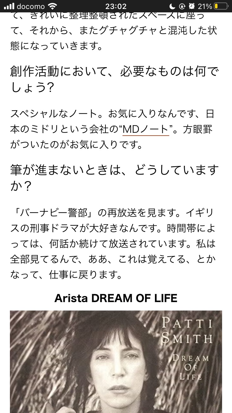 私はmdノートを使っています。パティ・スミスと同じ🫶